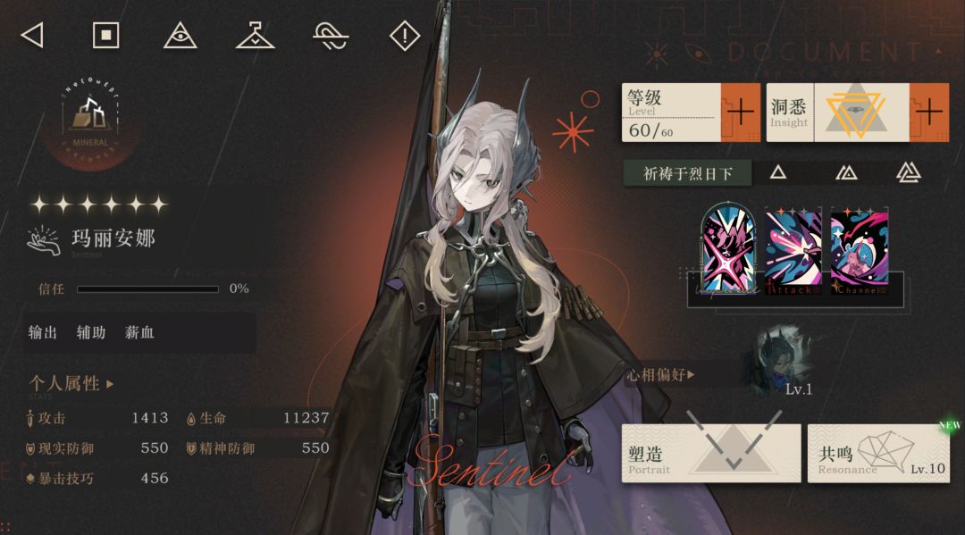 玛丽安娜是薪血体系角色,定位是副C+拐,角色主要特点是子弹体系+额外行动+薪血。