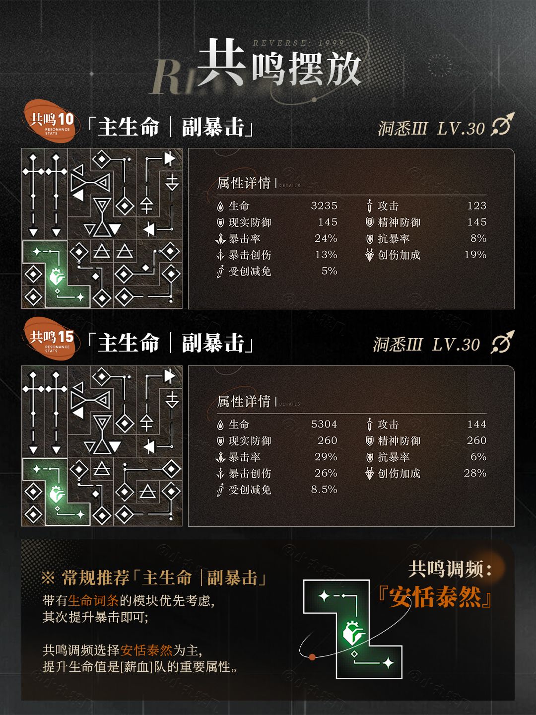 ※共鸣10,『主生命副暴击』摆法: