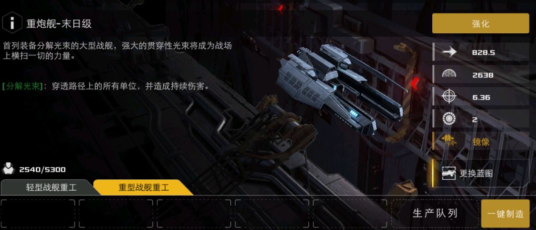 重炮舰:首列装备分解光束的大型战舰,强大的贯穿性光束将成为战场上横扫一切的力量。