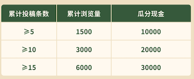 投稿体裁支持图文、视频、长帖等,要求标题+正文> 10 字,满足规则则可以参与瓜分奖金;
