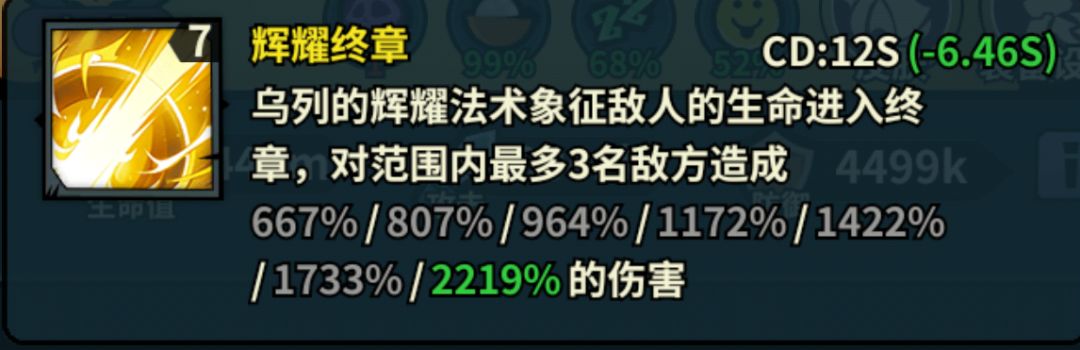 一技能:辉耀终章:CD12S(觉醒后极限满CD仅4.95S):