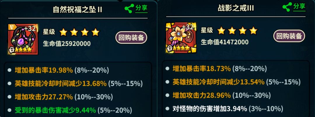 词条推荐:暴击>CD>1技能+1(仅推荐项链)>英雄增伤(项链4号位词条)>攻击>终伤>暴伤>怪物增伤(戒指4号位词条)。