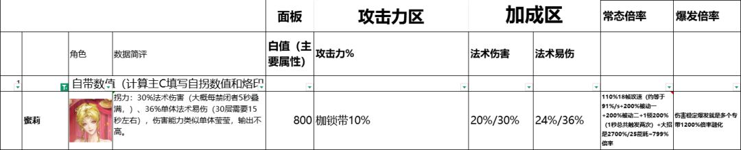 91%普攻收益每秒+200%被动一技能伤害+200%被动二普攻伤害+1锁200%盲盒伤害(可能是被动一也可能是被动二)+2700%大招(技能伤害)/25能耗=799%(常态倍率)=1412%(单人带加成倍率)