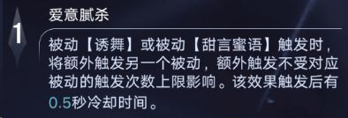 这个枷锁的逻辑很简单也很抽象,但抽象程度和洒家比略逊一筹,1枷锁的逻辑是,打出被动1(共舞)后由1枷锁触发被动2(招蜂引蝶),打出被动2由1枷锁触发被动1,1枷锁内置0.5秒cd,但是我们没办法控制这次到底是被被动1触发还是被被动2触发,所以就是充满了随机性,所以不是特别关键,还是留着抽周年庆把