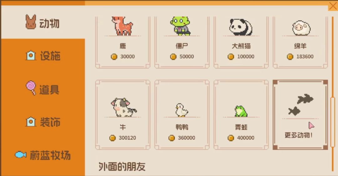 这次的DLC可以说像是重新做了一个新游戏,在蔚蓝牧场里,草地变成了海底,是真的有水,就好像是在任务栏上套了一个无边框的鱼缸。并且你把鼠标掠过去的时候,水面还会有上下波动的反馈,原来的小动物们也都变成了鱼儿,从锦鲤到大白鲨,你常见常听的海底生物,这里都有!