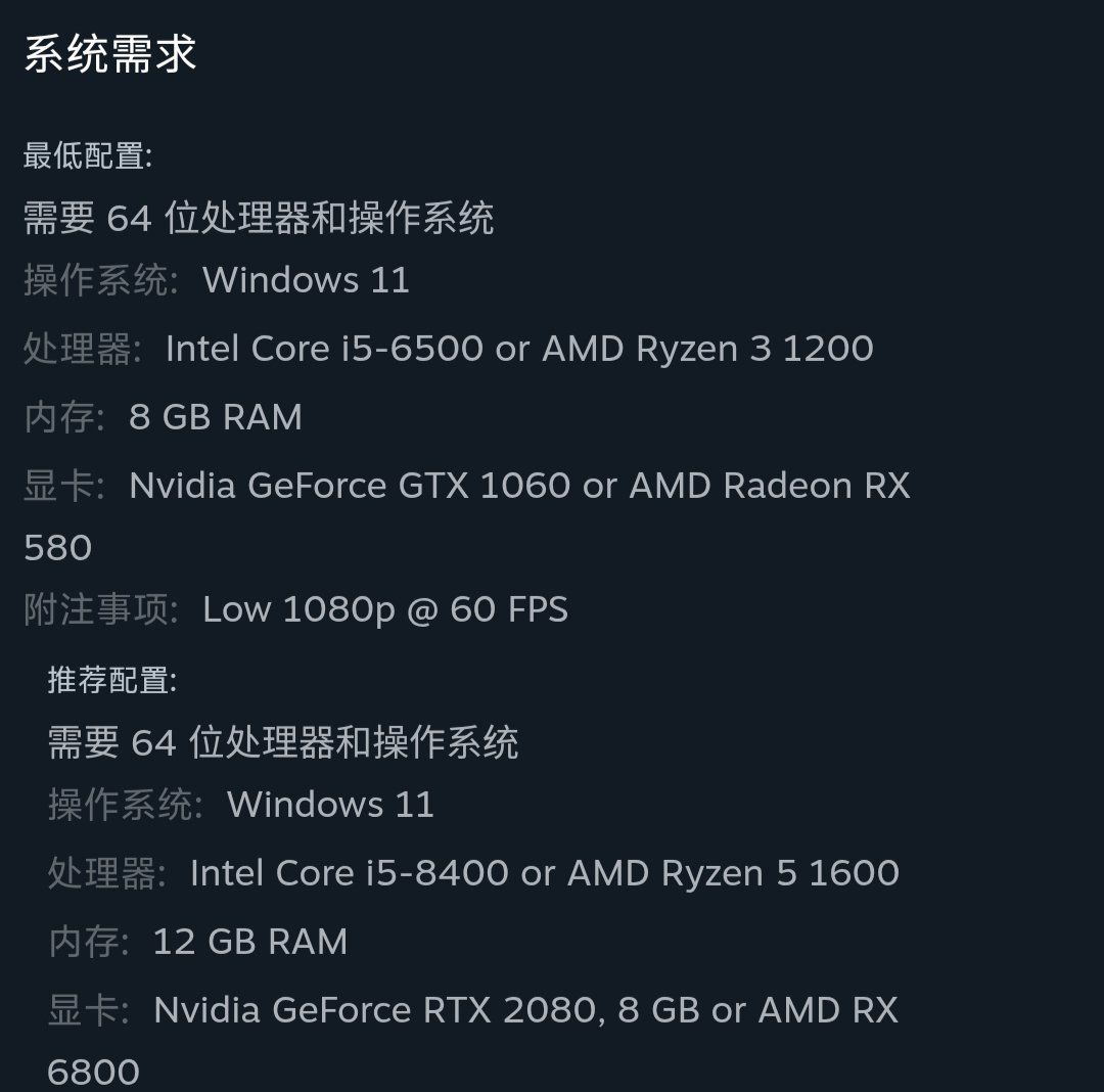 游戏配置要求: