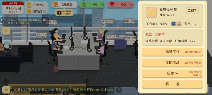 5.培训员工——接单最高能力需求是5000左右,到数值就别再花体力培训了,省下体力可以干很多事。