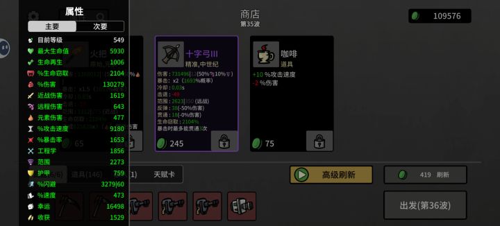 前提是把天赋叠上去,前期刷新收获,20波前靠收获买道具,16波左右钱已经多到花不完,把树,背包这两个核心道具叠上去,中后期叠一下吸血,20波后一局就能打10w材料,根本花不完