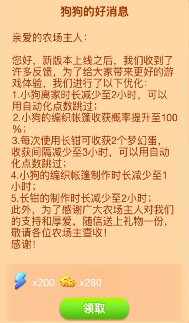 此外,为了感谢广大农场主人对我们的支持和厚爱,随信送上礼物一份,敬请各位农场主查收!
