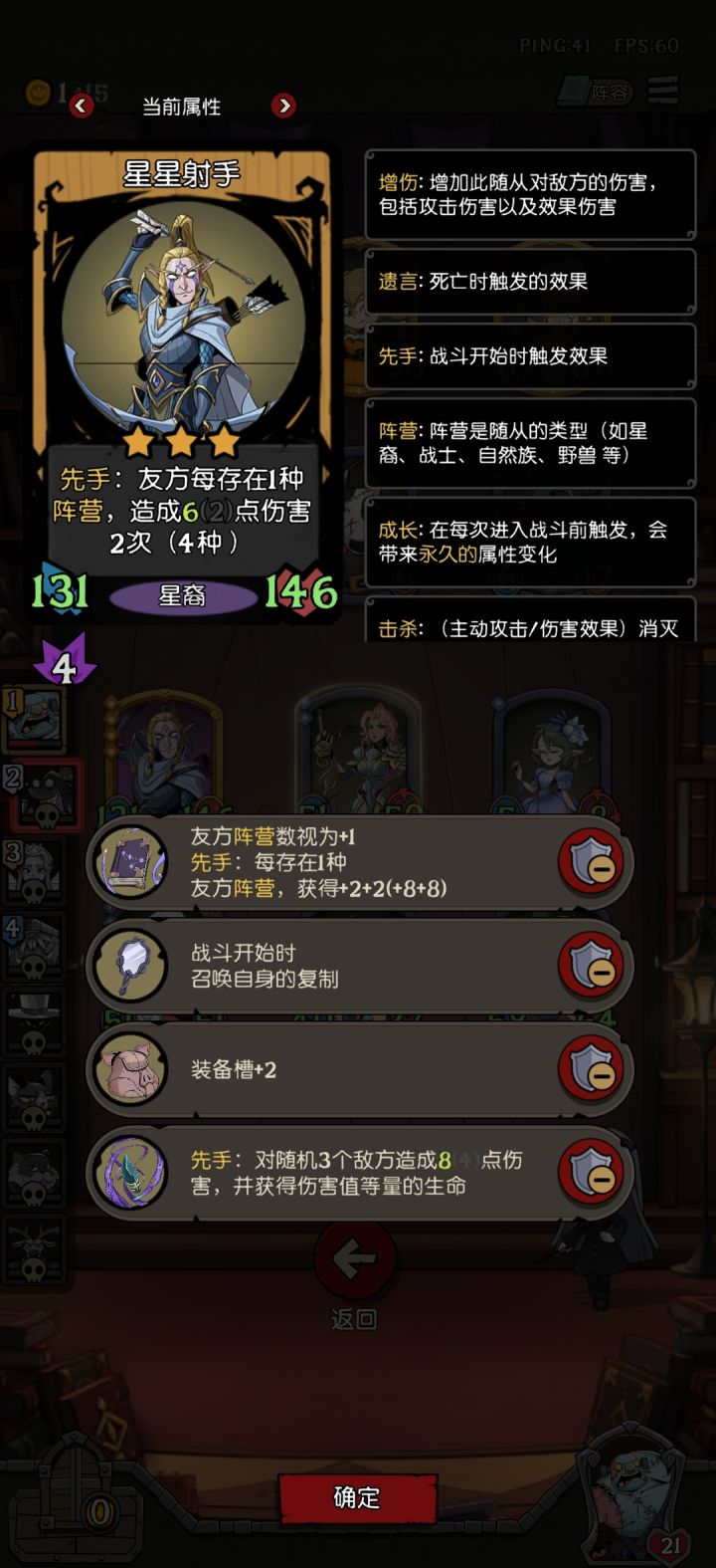 这套阵容吃分应该也不错,星星射手才3星,星座之书额外加阵营,缝合的随从随便带增伤装备,还能继承到星星身上,这里应该缝合玫瑰战士给全体加属性的。