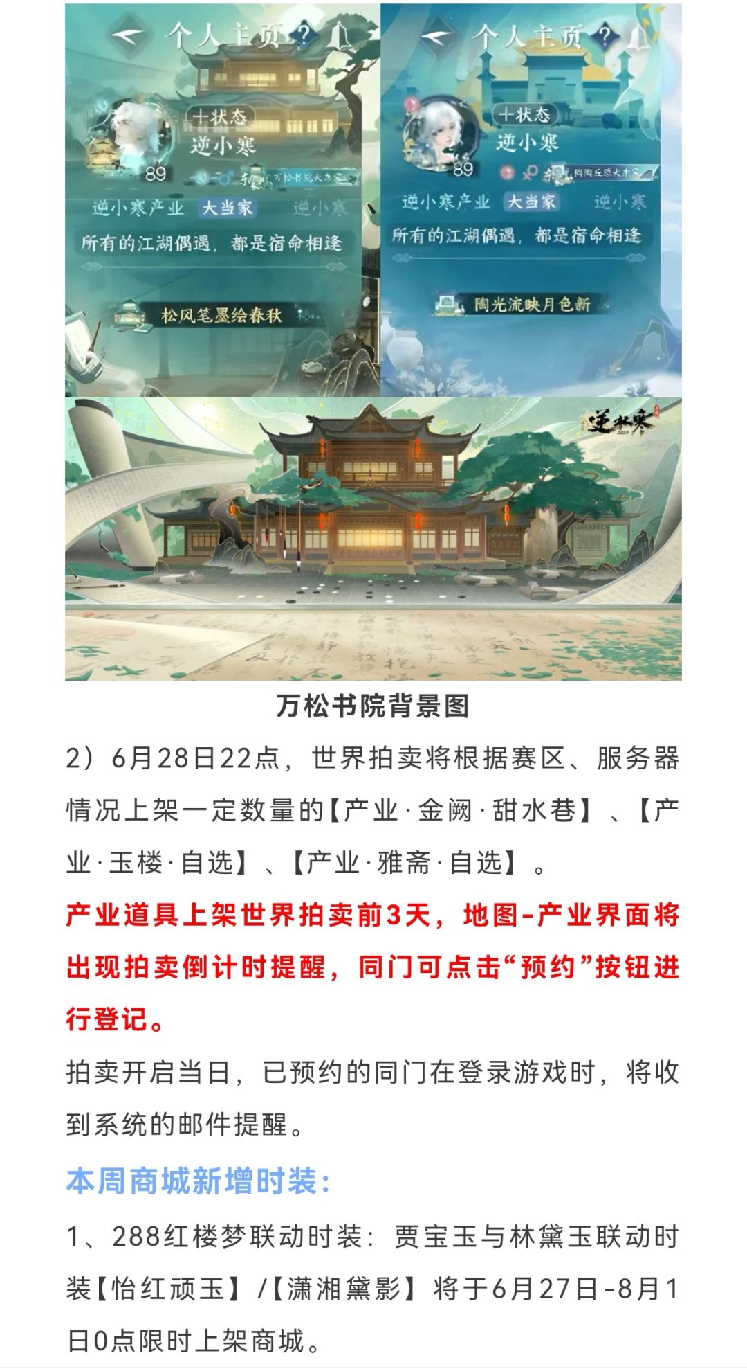 逆水寒今天上线7件必做事情,免费拿红楼梦时装+6元新时装,新版本战力提升方式,必拿1000代金券!未来4天商城新增5款直售时装