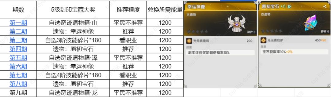 因此,不考虑上一期保留的能量,最多只能兑换前四级封印宝藏哦。剩下缺少的世界树能量需要冒险者购买氪金礼包。