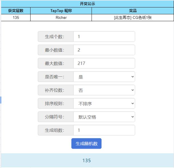 根据开奖结果显示,恭喜以下幸运的玩家们获得奖品:
