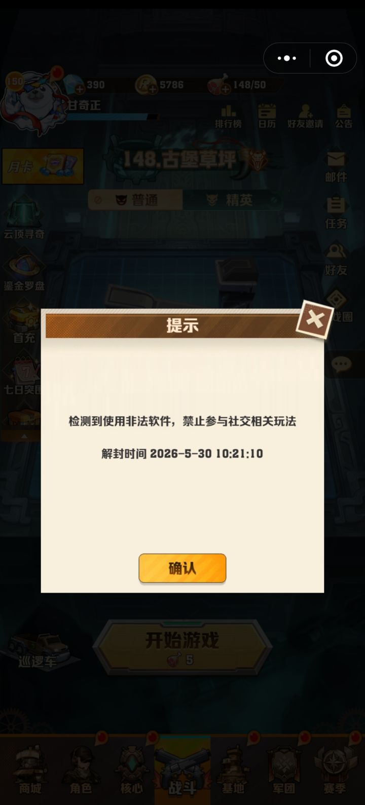 这个问题反馈好久了,怎么无缘无故的就给我封了,难道不能用电脑微信小程序玩么?