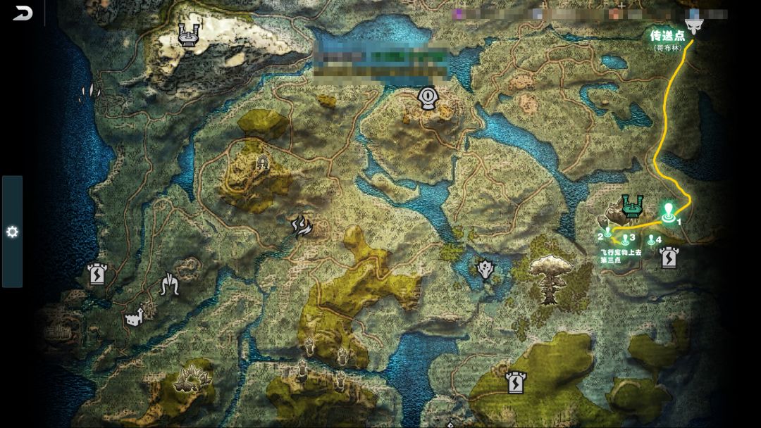 主要分布在乱石窟附近,图中上方悬崖平台以及乱石窟节点右侧一颗,其余皆分布在上方浮空岛两颗。乱石窟节点后面路上一颗。一共6棵晶木,全图分布如下: