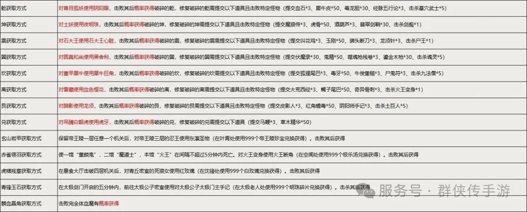 装备太极牌后可根据装备上的潜力获得额外的属性提升。太极牌的材料均来源于被激怒的boss。被激怒的boss属性会得到大幅度提升,并且缩短了太极公子可激怒的时间。具体如下