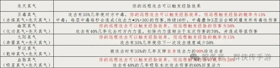 取消先天经脉的移动速度效果,新的先天经脉效果为:经脉效果可作用于远程。与先天经脉进行组合的经脉也产生了相应的变化。与测试服相比,略微下调了罗汉真气返还的伤害。具体如下图所示
