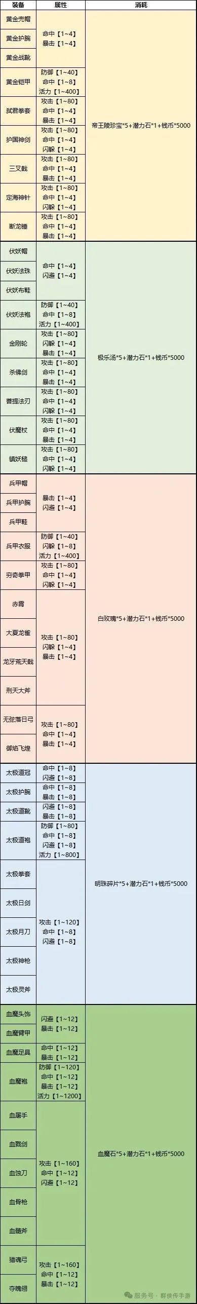 潜力属性相比于测试服进行了大幅度调整。因潜力属性受到升段以及太极牌加成这两个系数的影响,在系数叠加的情况下,潜力属性带来的收益无比巨大。因此减少了黄金、伏妖、兵甲、太极系列装备的潜力属性。