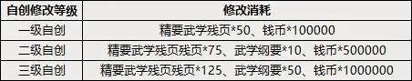 自创修改属性功能下调了修改所需的材料数量。侠士可通过npc“独孤剑影”来修改自创属性。修改自创属性有两个条件