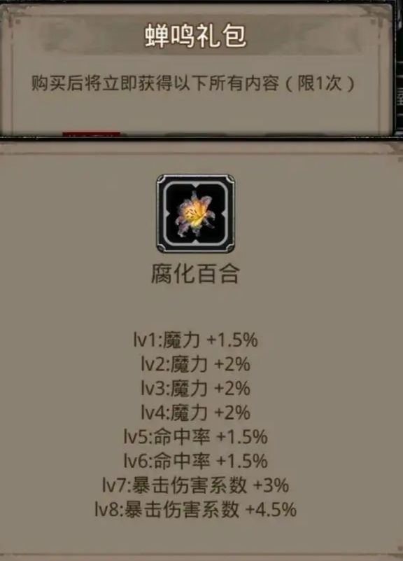 1.腐化百合的具体属性大致约为12.5魔——14魔+3命中。