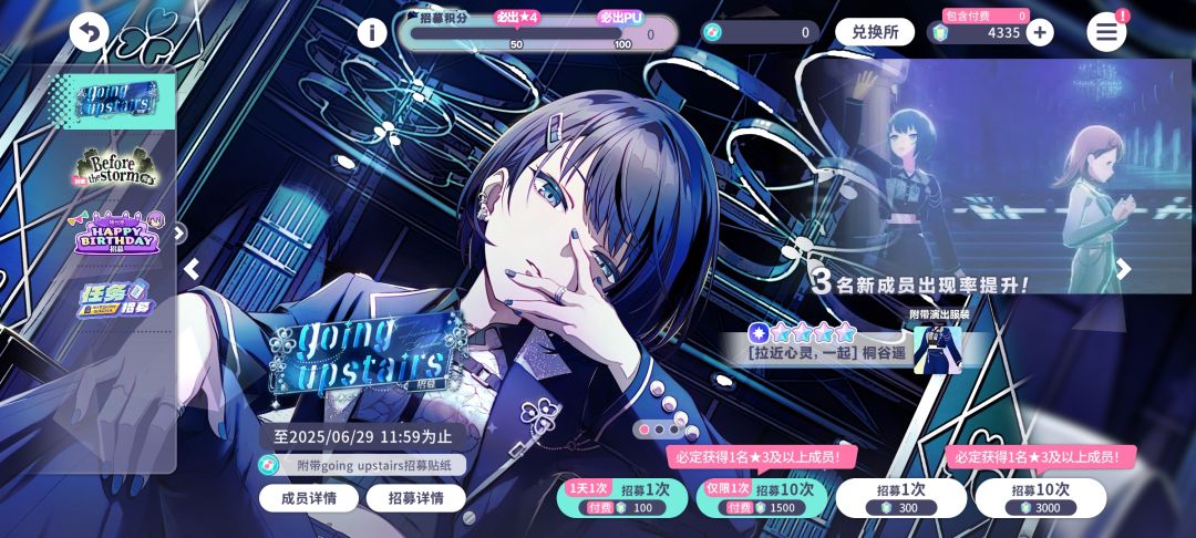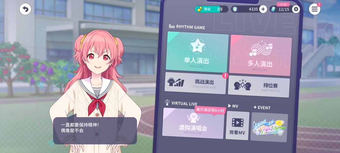 玩家通过主界面右下角的演出进行游玩,玩家可以选择各种类型的演出和活动。
