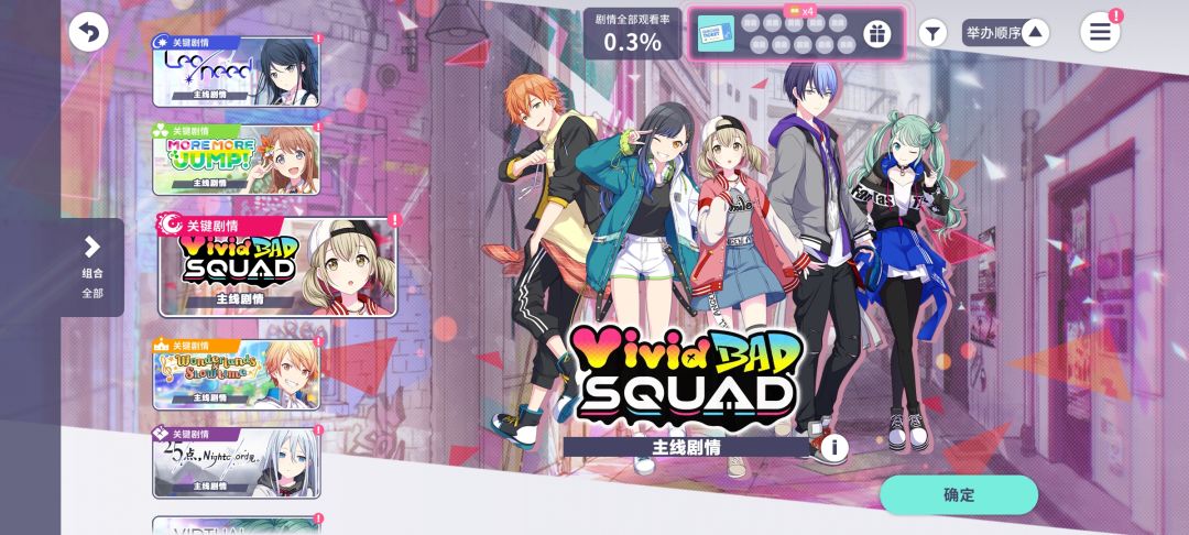 选择完毕后会根据选择情况推荐乐队组合,你可以通过左右的箭头查看并选择其它世界的组合。选择对应组合后,会观看序章,并获得该团队所有成员基础卡面。当然,你也可以在后续观看其它团队的剧情。