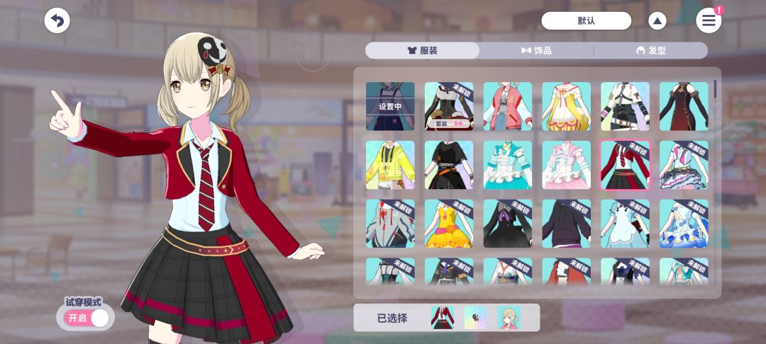玩家可以通过演出服装来为角色设置自己心意的服装。可以使用试穿模式穿戴未获得的服装,拖动左边人物可移动并旋转,更好查看服装。