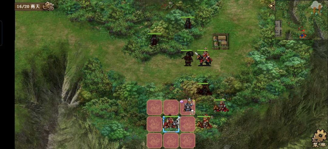 开局很关键,第一回合曹操到邓艾左上方给关羽邓艾上强行,再靠随步往栈道里冲,张郃往栈道里冲,邓艾进栈道模仿曹操给张郃上强行,张郃冲到乌巢右侧门口打一下井阑,这样就可以触发奇袭乌巢的剧情,袁绍就会第一回合率全军出击,我军左侧四人也能第二回合出现,提升效率。邓艾到栈道的上出口处帮张郃分摊一下伤害(这里可能需要sl一下张郃邓艾不死)。关羽冲出左门打反,其他人按下图站位,荀攸给张郃一个输送
