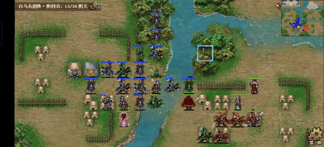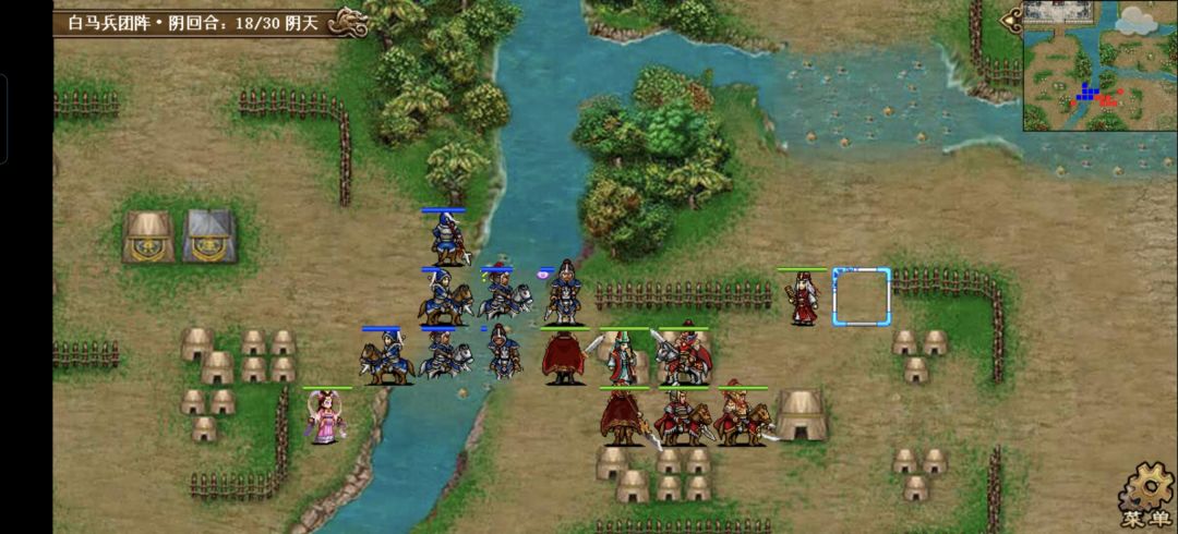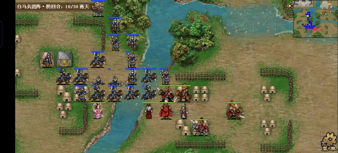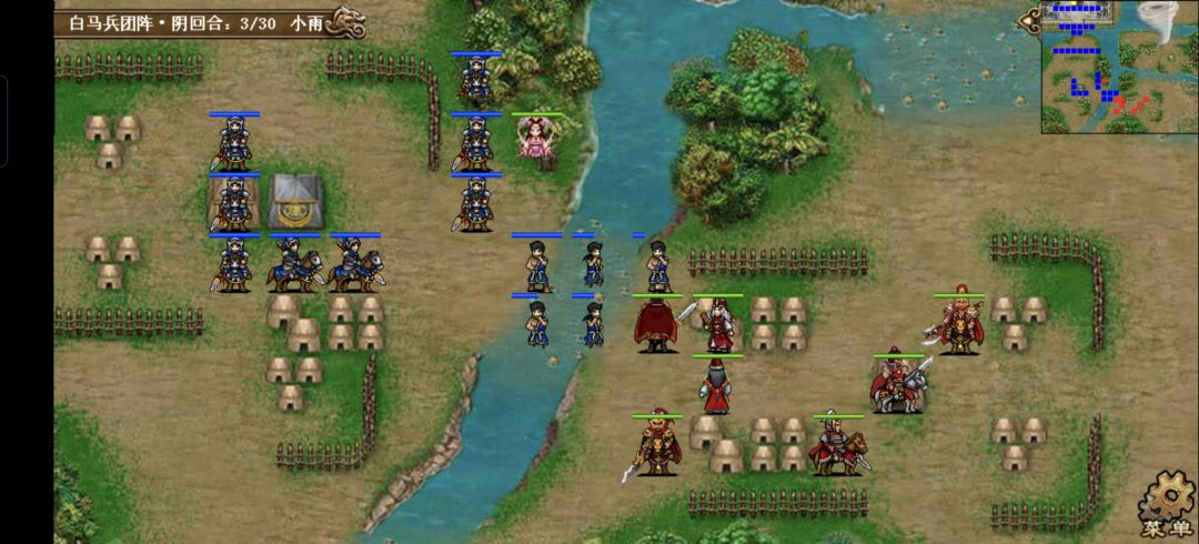 非常简单的一关哈,仅有的难度在机制上,敌军死亡时周围四格有敌军的话就会残血复活,破解方法是利用击退分割敌军,或用貂蝉魅惑把身边的敌军隔离开来,敌军仅有39人,回合数却高达30个,实在是没什么压力的