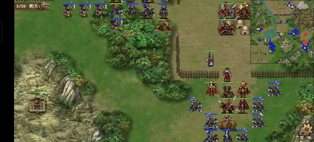 荀彧到荀攸左侧两格风龙司马上方两格的虎贲,荀攸原地回归荀彧,大夏到曹洪下方打曹洪上方的草寇,607左移一格射曹洪右侧的驯兽,触发大夏追击干掉驯兽虎贲,曹洪原地打上方的草寇,貂蝉到607右下侧斜向魅惑张任上方的丹阳兵,丹阳兵去荀攸上方两格打草寇,触发大夏607追击击杀草寇,张郃去张任上方5格打丹阳兵,触发司马火龙追击打残丹阳兵,魅惑的弓箭手补一箭解决丹阳兵。典韦给郭嘉碧琳丹,再到大夏左侧两格变雨天,张辽到许褚右侧三格急救许褚,荀彧到郭嘉上方两格给许褚上方的枪兵刷海啸,曹操到荀彧左侧往左刷两发海啸,再随步到大夏下方,张任大补给曹洪,再到荀彧左侧往左海啸,司马去荀攸下方救队自己,张辽回大夏左侧输送关羽,关羽右移一格打大刀,许褚原地打上方的枪兵,郭嘉到关羽上方救军自己,再回荀彧下方,张郃到张辽左侧打上方的虎啸军,貂蝉暖风张辽,张郃随步到张辽左侧三格卡位,邓艾给自己葡萄酒,再给许褚肉包。