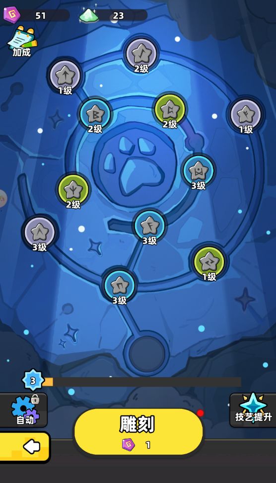 我们挖出来的印章可以雕刻成印记为我们增加力量,印记有品质,等级之分。对应的印记只穿戴在对应的槽位上增加战力,替换下的印记可进行分解再利用。分解后的材料可用于雕刻技艺升级,雕刻技艺越高雕刻出的印记越强力噢!