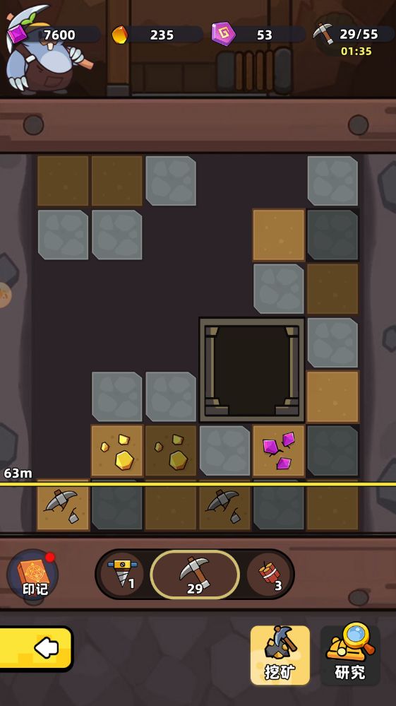 首先在采掘厂中我们需要消耗铁锹可进行土块挖掘,挖掘特殊矿格可获得印章、钻石、晶矿等奖励。要是嫌一个一个挖太慢了还可以用特殊道具,进行范围性挖掘事半功倍噢!