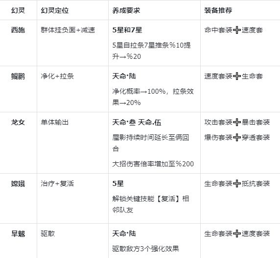 - 低成本高收益:优先选择 3星起用、5星质变的幻灵,避免依赖高星或氪金限定角色。
