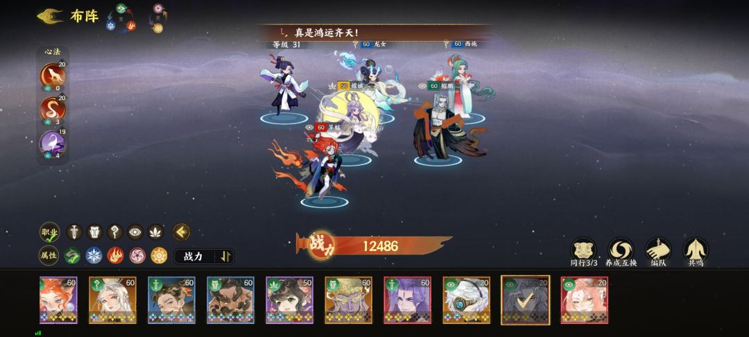 站位说明:嫦娥居中占位,发挥其【复活】技能