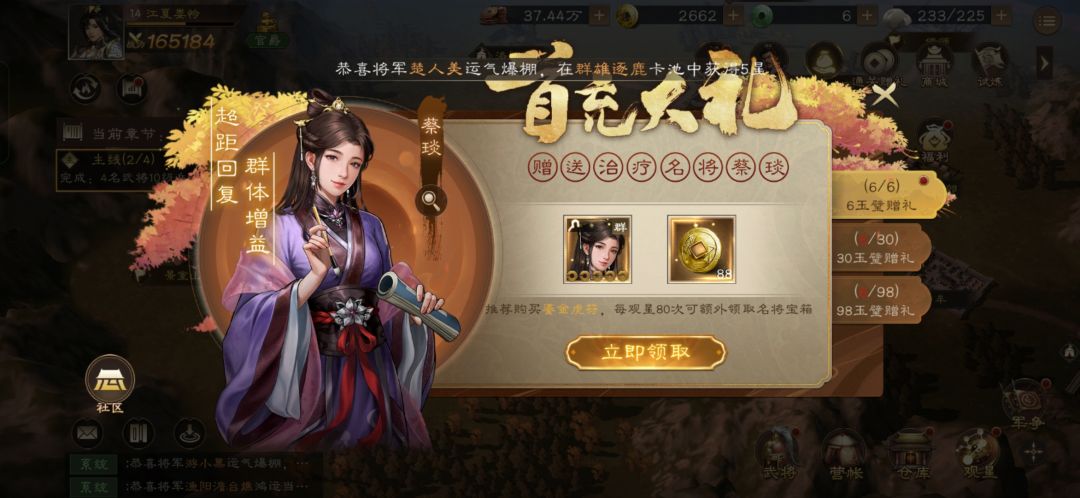 然后也算游戏内的冲销,直接首充大礼也到手,零氪党花一元也不是不行。