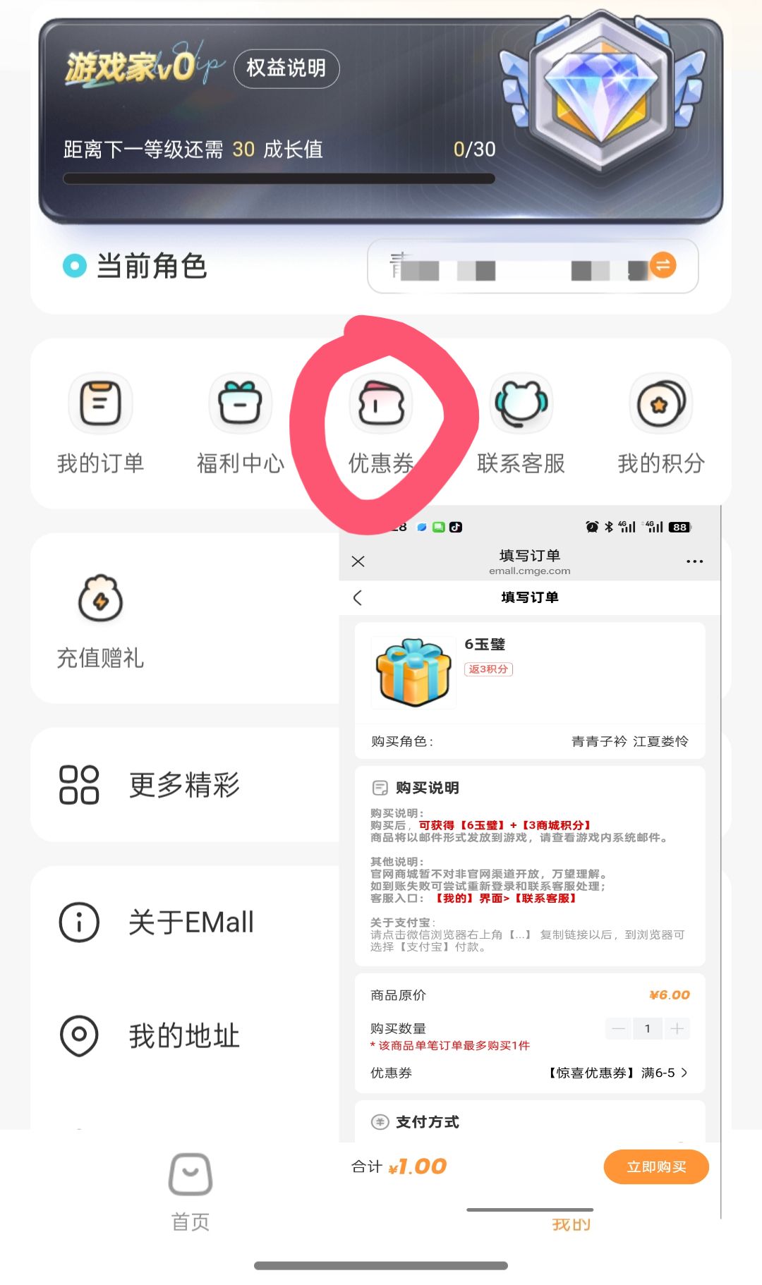 也是在微商城,先领优惠券满6-5。