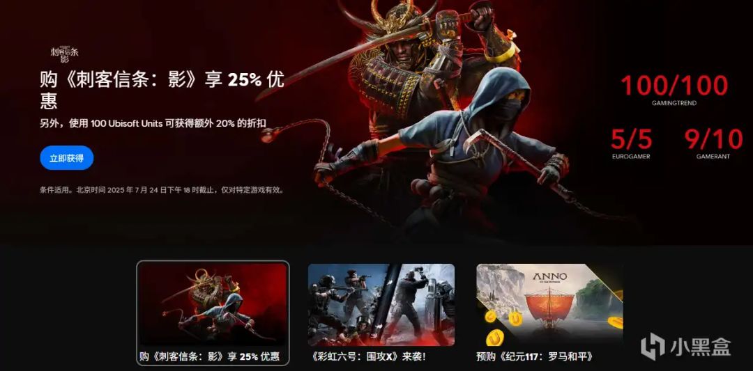 夏促已经开启了!育碧新作《刺客信条:影》开启暑期史低折扣 - 全版本 25% 限时优惠叠加 100U 点再享 8 折,最低相当于 6 折入手,让你以史上最低门槛成为战国暗影中的主宰!👇官网直达地址: