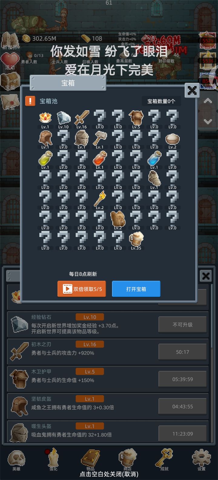 如此往复重生个四五次就能快速刷重生了,往后就是重生刷层重生。不用打极限层,这类游戏极限层是后期话题,前期先把永久装备等级和类型刷起来。