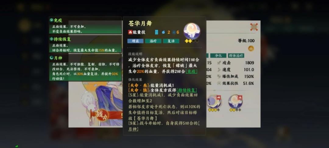 - 【苍华月舞】开场携带「月神」:死亡后30%血量复活
