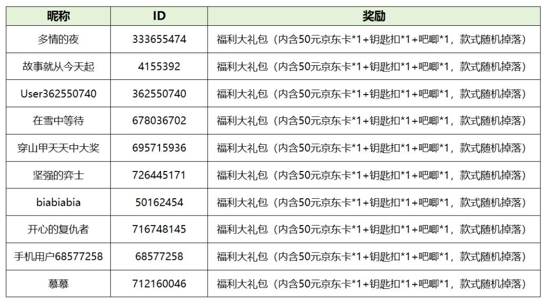 恭喜以下御灵师获得本次活动奖励,请于8月7日12:00前凭【评论截图】+【中奖截图】+【游戏账号截图】,私聊小书灵提供收件信息完成兑奖~活动奖励将于回收收件信息的15个工作日内完成寄出,祝大大游戏偷快~