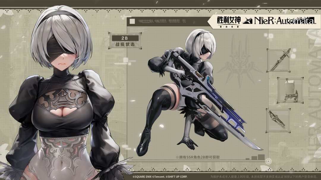 『2B-战损状态』在拥有角色2B后,可通过联动活动【OuteR:Automata】的成就任务中领取。