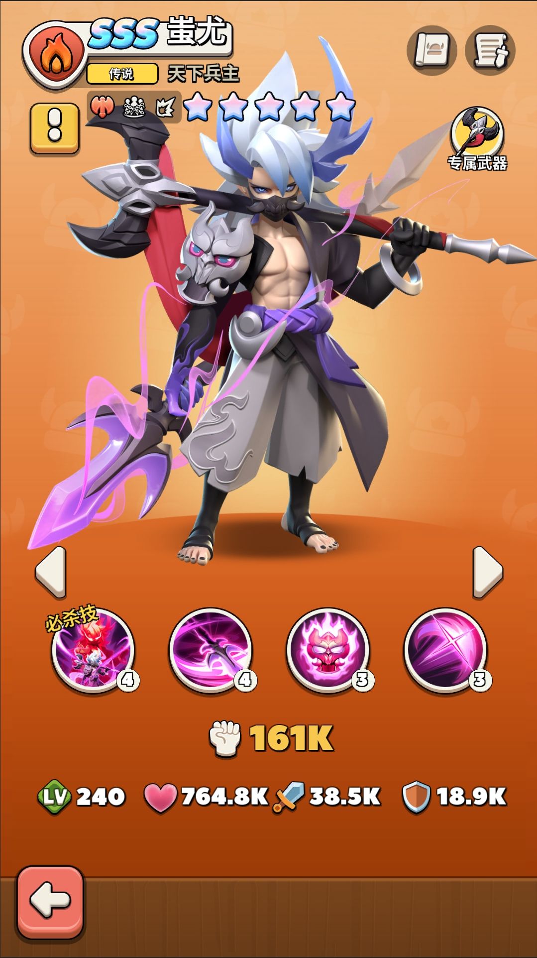 蚩尤的专属武器,开战时可对领域内敌人施加魔神印,升级后可提高魔神印及兵魄、将魂效果