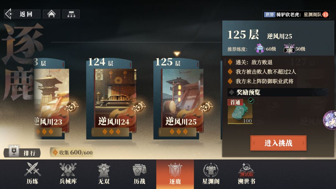 玩家攻略 | 「逐鹿」第125层推荐攻略