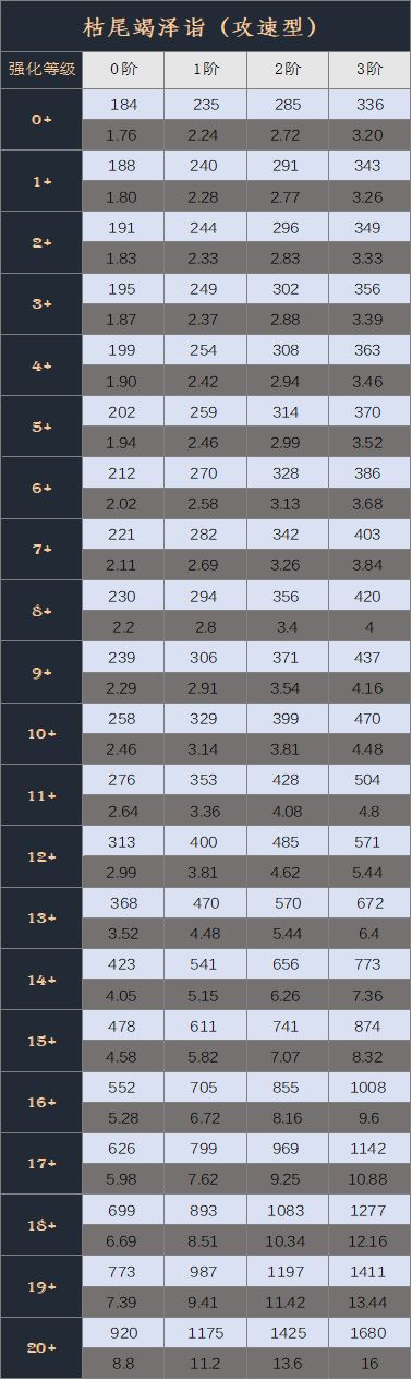 (2)3星:触发「往生咒」时,大幅度提升敌方受到的间接伤害,提高了间伤队伍的反手输出能力,一回合触发两次免死效果能够对敌方造成最大生命值的伤害,上限为1000%攻击力,但此伤害会被琅琊的减伤buff影响,实际伤害并不突出,只能作为反手能力中的一小部分。 偃兵等级属性