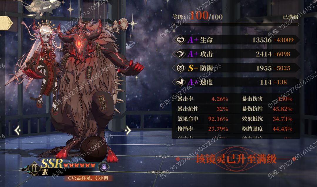 太子长琴(专属偃兵):拥有专属偃兵的太子长琴可以为蜚提供效果命中加成,且双「控魂」的四极效果,不仅可以无视敌方效果抵抗属性,也能提升我方镜灵免疫减益效果的概率;