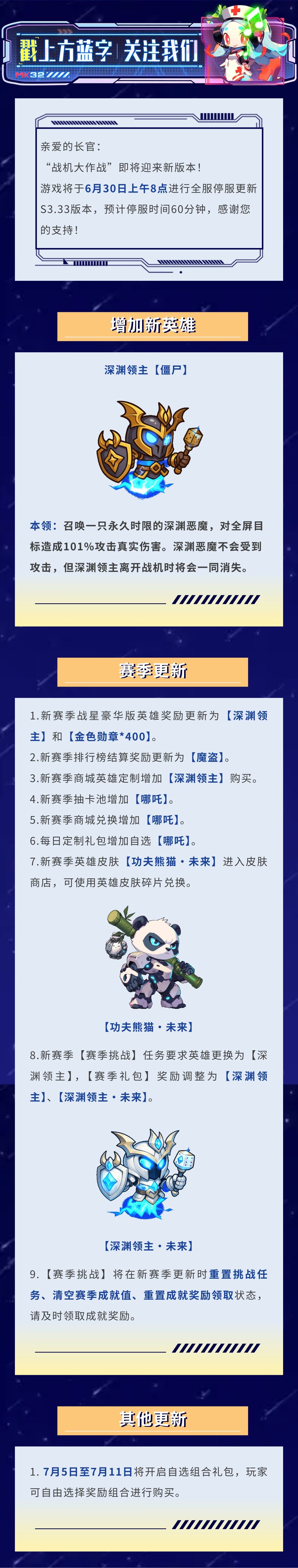 【版本更新】赛季更新,深渊领主登上战机舞台!
