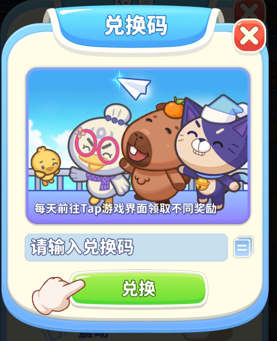 输入上方兑换码 道具能量通通打包,点击确认!