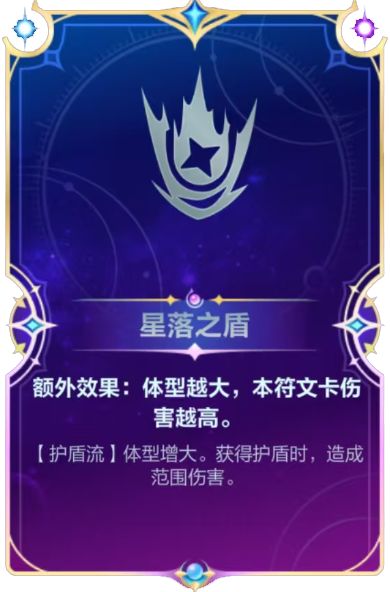 强化符文:星落之盾,体型越大,获得护盾时造成的范围伤害越高,配合上符文:利维坦,可以进一步增加英雄的体积,直接化身峡谷巨无霸,极大提升了强化符文:星落之盾的范围伤害,很适合赛恩、诺提勒斯等自带护盾的英雄,配合附魔:石像鬼板甲,获得护盾的同时还会对周围造成伤害,完美诠释何为攻防一体~