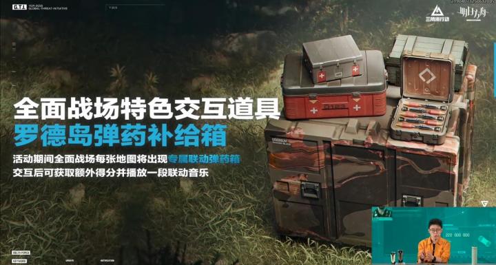 全面战场特色交互道具,罗德岛弹药补给箱,活动期间全面战场每张地图将出现专属联动弹药箱,交互后可获取额外得分并播放一段联动音乐。