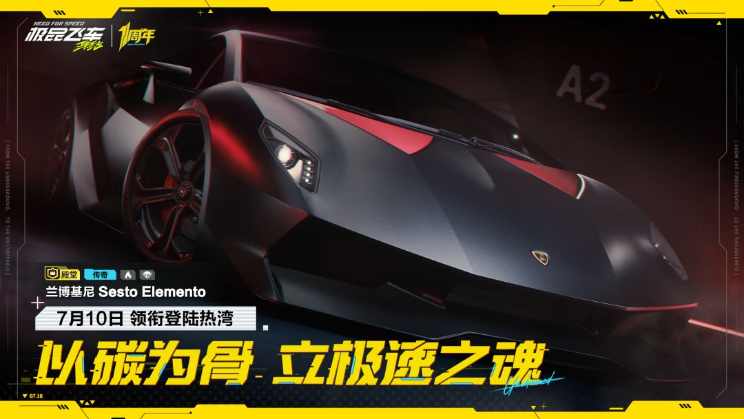 7月10日,殿堂传奇-燃油跑车组&经典情怀组-兰博基尼Sesto Elemento即将领衔登陆热湾。以碳为骨,立极速之魂,这辆终极豪华座驾将为街头赛车手们带来极致的驾驶体验!